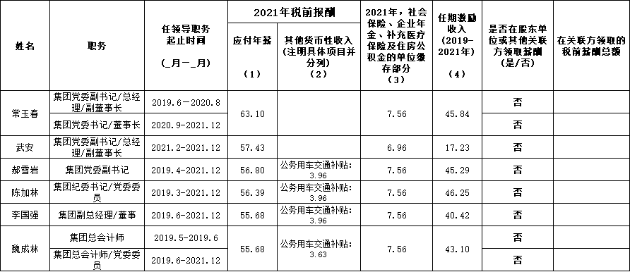 關(guān)于企業(yè)負(fù)責(zé)人2021年度薪酬和2019-2021年任期激勵(lì)信息披露的公告