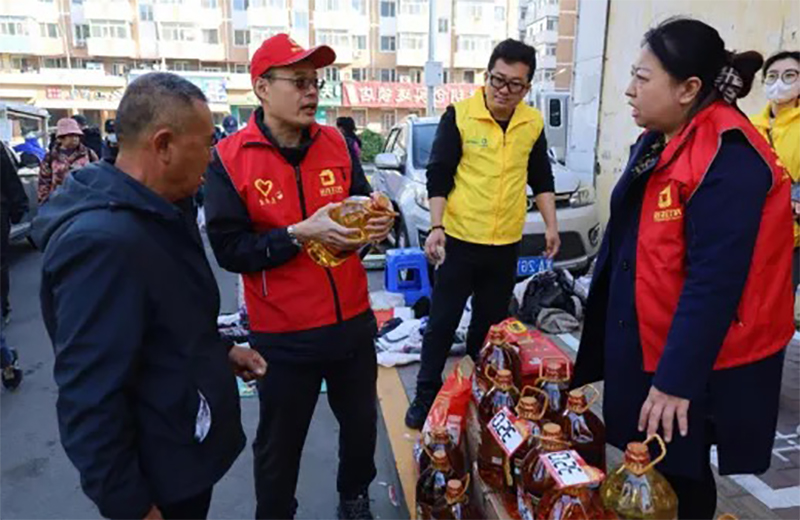 活動(dòng)中,在哈全體黨員及團(tuán)員統(tǒng)一著裝,組成先鋒隊(duì),化身宣傳達(dá)人,秉承著“讓龍江農(nóng)民更幸福、讓龍江農(nóng)業(yè)更強(qiáng)大、讓龍江農(nóng)產(chǎn)品更有市場競爭力”的初心使命,積極向廣大消費(fèi)者推廣介紹“金谷農(nóng)場”系列產(chǎn)品,讓消費(fèi)者以最實(shí)惠的價(jià)格享受“金谷農(nóng)場”品牌產(chǎn)品的綠色與健康,通過發(fā)揮黨員先鋒模范作用,推進(jìn)黨建經(jīng)營相融合,穩(wěn)固提升“金谷農(nóng)場”品牌的知名度和美譽(yù)度。