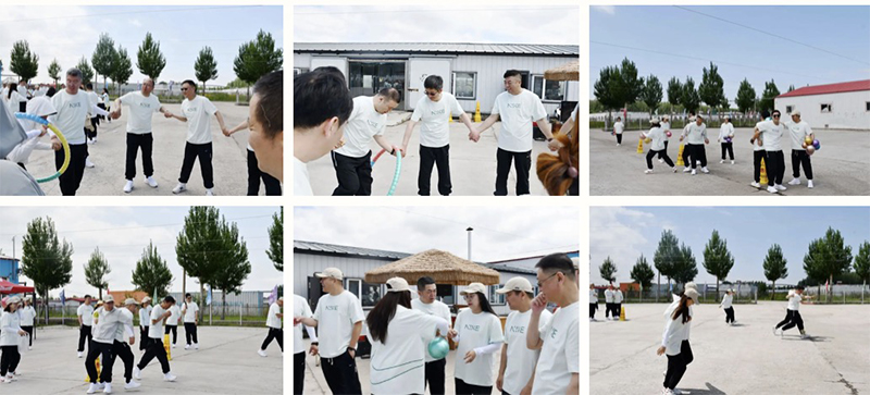 徒步結束后,全體人員在巨源農(nóng)場組織開展了一系列精彩的團建活動,員工們在活動中充分發(fā)揮團隊協(xié)作精神,出色地完成了一個又一個任務?;顒訄雒婕燃で槿缁鹩譁剀昂椭C,大家配合默契、齊心協(xié)力,盡情揮灑著龍糧人的活力與激情,完美的展現(xiàn)了龍糧人砥礪奮斗、凝心聚力的精神風貌。