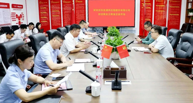 近日,深圳市怡亞通供應(yīng)鏈股份有限公司總經(jīng)理助理、戰(zhàn)略客戶事業(yè)部總經(jīng)理陳聰一行到訪黑龍江糧食交易市場,并圍繞相關(guān)合作事宜舉行座談交流。農(nóng)投集團總經(jīng)理助理、糧食交易市場黨支部書記、董事長魏志偉參加座談。