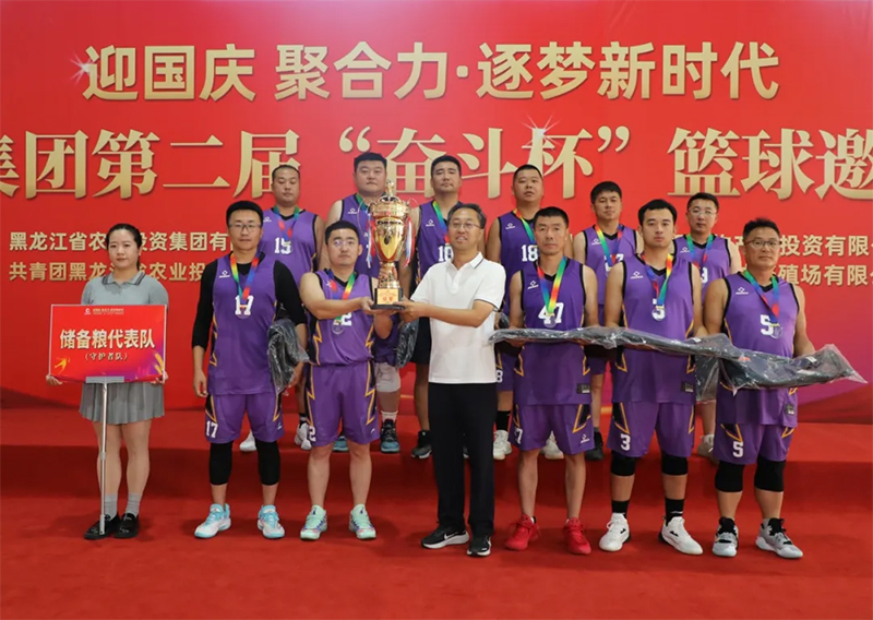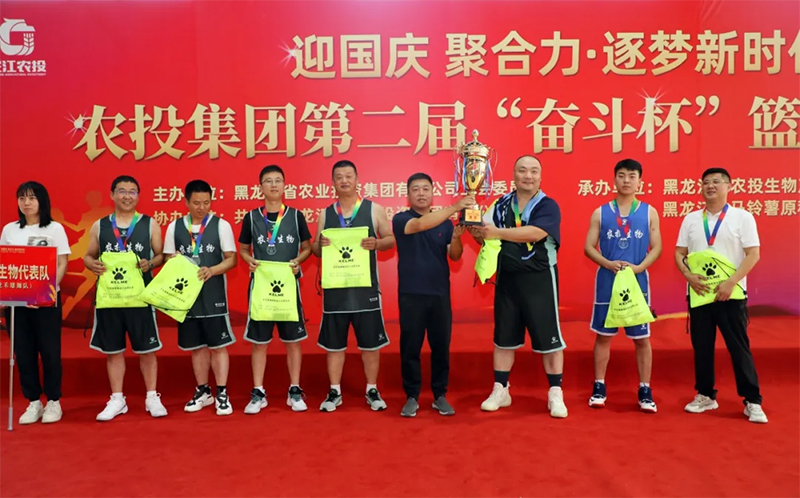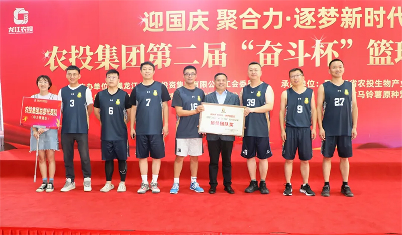 9月8日,由黑龍江省農(nóng)業(yè)投資集團有限公司工會委員會主辦,共青團黑龍江省農(nóng)業(yè)投資集團有限公司委員會協(xié)辦,黑龍江省農(nóng)投生物產(chǎn)業(yè)投資有限公司、黑龍江省馬鈴薯原種繁殖場有限公司承辦的“迎國慶 聚合力 逐夢新時代”農(nóng)投集團第二屆“奮斗杯”籃球邀請賽圓滿落幕。農(nóng)投集團黨委副書記、工會主席郝雪巖出席活動并為獲獎團隊頒獎。