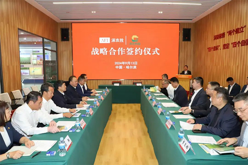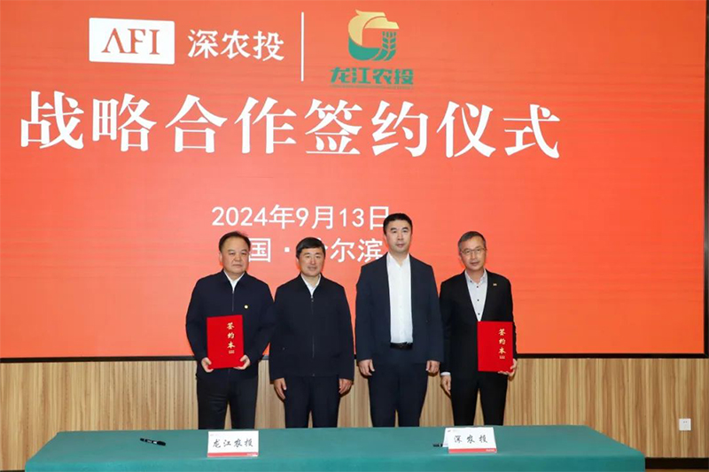 9月13日,黑龍江省農(nóng)業(yè)投資集團有限公司(以下簡稱龍江農(nóng)投)與深圳農(nóng)業(yè)與食品投資控股集團有限公司(以下簡稱深農(nóng)投)在深圳(哈爾濱)產(chǎn)業(yè)園舉行戰(zhàn)略合作簽約儀式。深圳市政府黨組成員、副市長代金濤,黑龍江省國資委黨委委員、副主任張玉福出席活動,深農(nóng)投黨委書記、董事長黃偉,龍江農(nóng)投黨委書記、董事長常玉春分別代表各自企業(yè)簽約。