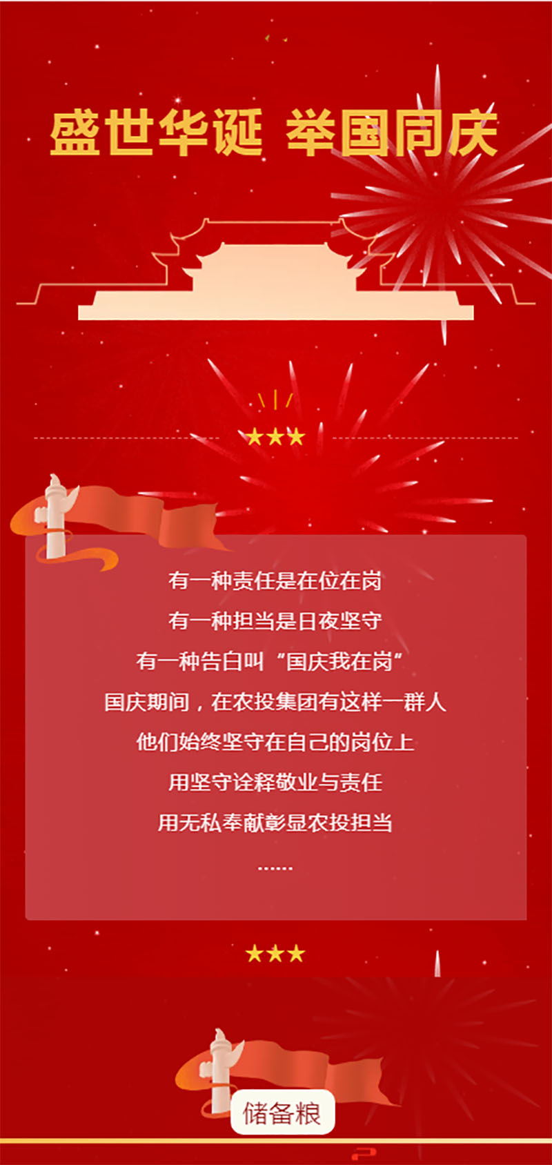 有一種責(zé)任是在位在崗,有一種擔(dān)當(dāng)是日夜堅守。在國慶期間,省儲備糧公司有著這么一群省儲人,他們始終堅守在自己的崗位上,用堅守詮釋著責(zé)任與擔(dān)當(dāng),他們扎根在糧食倉儲一線,為確保糧食儲存安全默默奉獻。