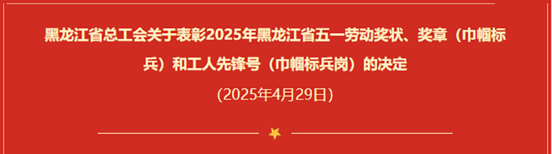 日前,黑龍江省總工會(huì)發(fā)布《關(guān)于表彰2025年黑龍江省五一勞動(dòng)獎(jiǎng)狀、獎(jiǎng)?wù)拢ń韼綐?biāo)兵)和工人先鋒號(hào)(巾幗標(biāo)兵崗)的決定》,農(nóng)投集團(tuán)權(quán)屬企業(yè)儲(chǔ)備糧公司榮獲“2025年黑龍江省五一勞動(dòng)獎(jiǎng)狀”、黑龍江農(nóng)投大數(shù)據(jù)科技有限公司事業(yè)二部榮獲“2025年黑龍江省工人先鋒號(hào)(巾幗標(biāo)兵崗)”。