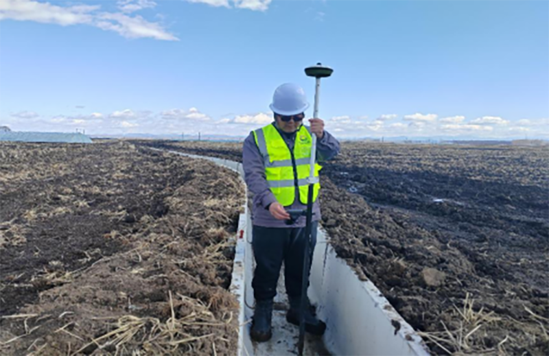 △黑龍江省農(nóng)業(yè)開發(fā)建設(shè)集團第六建筑有限公司通河分公司高標(biāo)準(zhǔn)農(nóng)田施工項目“復(fù)測溝渠高程”。