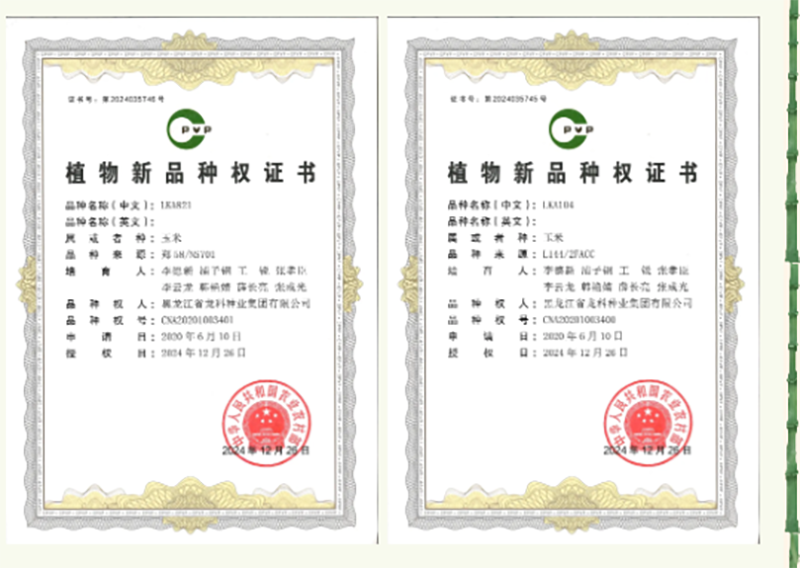 近日,黑龍江省龍科種業(yè)集團(tuán)有限公司在生物育種領(lǐng)域取得重大突破,成功獲得由農(nóng)業(yè)農(nóng)村部頒發(fā)的玉米自交系LKA104和LKA821兩項(xiàng)植物新品種權(quán)證書。這是龍科種業(yè)在玉米種質(zhì)資源創(chuàng)新道路上的又一里程碑,標(biāo)志著龍科種業(yè)在品種研發(fā)和自主知識(shí)產(chǎn)權(quán)布局方面邁出了堅(jiān)實(shí)步伐!